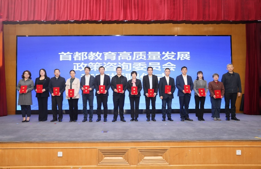 北京市委教育工委副书记沈千帆为首都教育高质量发展政策咨询委员会京内外专家代表授予聘书,公司刘亚娜教授、赵世奎教授、刘贤伟副教授受聘担任政策咨询委员会专家。