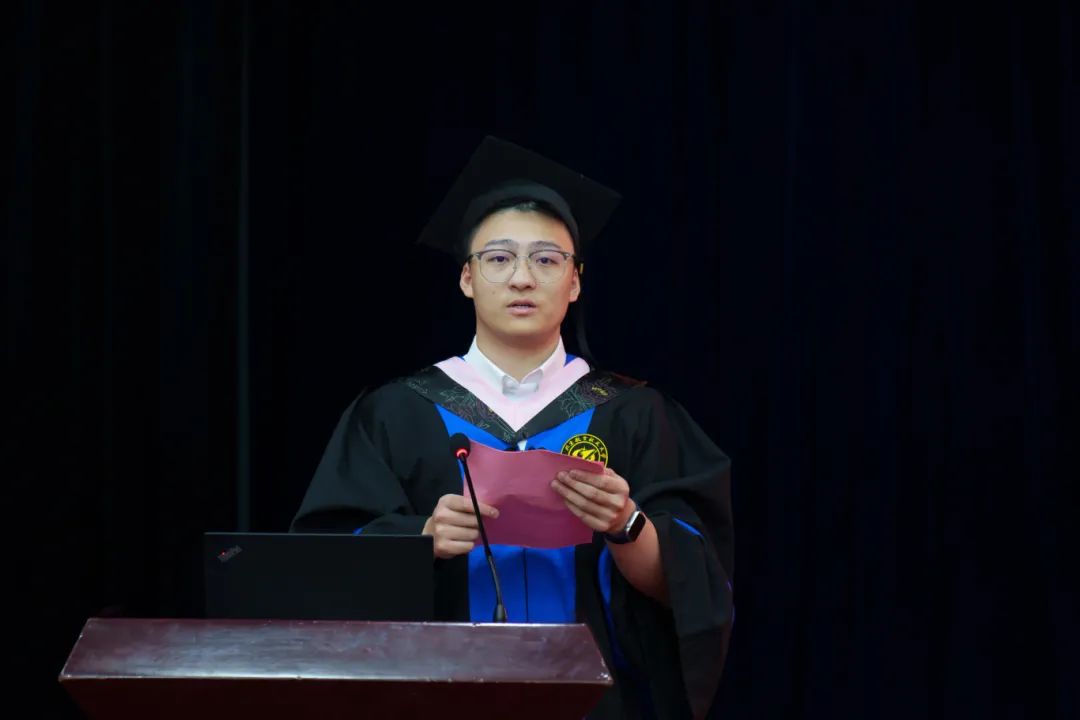 全日制博士毕业生代表贾鑫同学感恩公司对博士生培养的重视,感恩导师的治学态度与胸怀,使其收获了关于做事业、做学问、为人处事、待人接物的精神财富。英国365集团公司官网的求知时光教会她理论求索、躬身实践的真知。面向未来,她祝愿人文公管人永远怀揣希望,不惧挑战,用行动去书写和践行“空天报国,强国有我”。