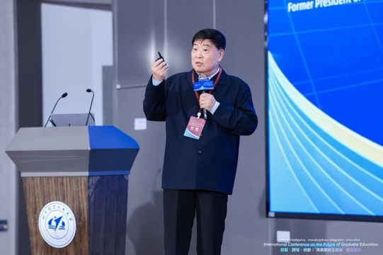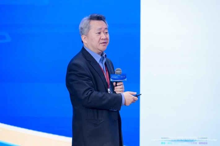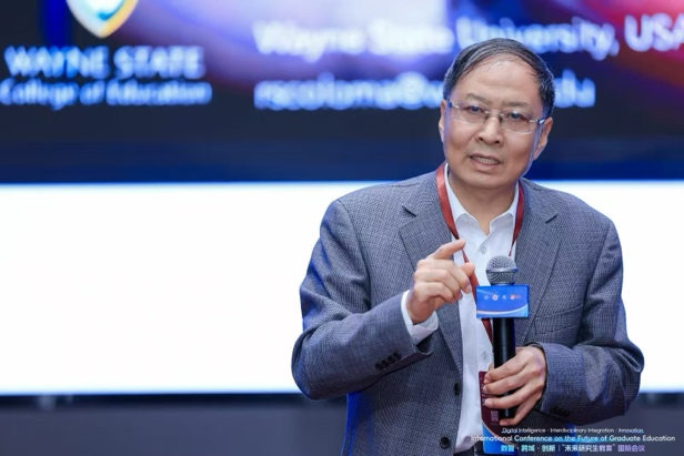王战军做了题为《面向未来的中国研究生教育:规模·质量·创新》的报告。他认为,从量变到质变的完成要求重新思考研究生发展的规模与质量。随着规模扩张到结构优化的格局跃迁,有质量保障的规模增长是研究生教育发展的主旋律,我国建成了全球最完善的研究生教育体系。他认为,研究生教育宏观质量观从功利性到服务性的根本性转向,要注重满足人的需求和服务社会发展需求。最后,他指出,在快速识别、精准判断、科学决策的数字时代,要以AI赋能个性化教学、精细化管理;以AI重塑科研范式,激发原始创新,释放科研生产力。