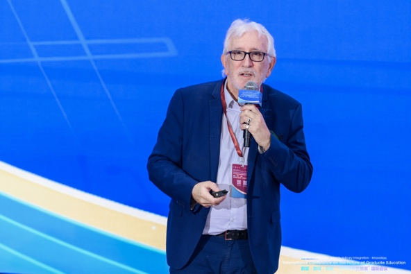Cristian Aedo表示,当今世界面临气候变化、人工智能颠覆和社会不平等等多重全球挑战,这要求研究生教育必须重新审视。他指出,中国研究生教育规模扩张令人瞩目,但也面临毕业生数量与就业市场需求不匹配的挑战,传统教育模式正面临审视。他呼吁,研究生教育应培养员工在多元角色中塑造未来的能力,并希望与会者深入探讨如何重新设计课程、发挥数字化学习作用以及将全球公民意识与伦理领导力融入教育结构中。