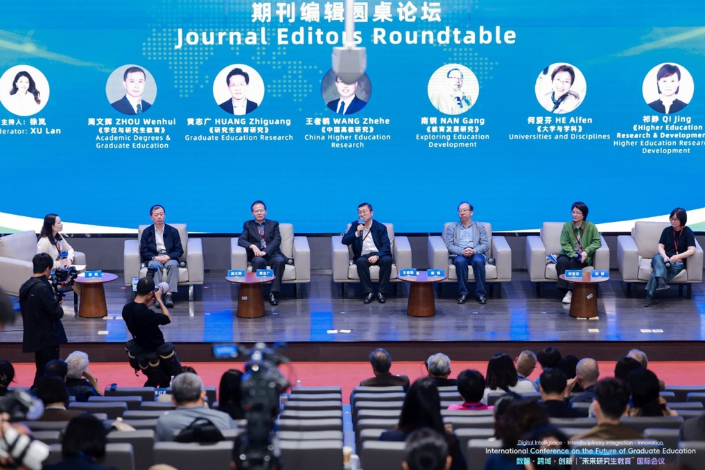 在期刊编辑圆桌论坛上,北京理工大学研究生教育研究中心副主任、《学位与研究生教育》杂志社社长周文辉,中国科学技术大学、《研究生教育研究》编辑部执行主任黄志广,中国高等教育学会秘书处编辑部副主任、《中国高教研究》副主编王者鹤,上海市教育科学研究院、《教育发展研究》副编审南钢,教育部学位中心研究与发展处高级项目主任、《大学与学科》期刊编辑何爱芬,祈静等期刊编辑围绕“教育研究论文的写作、发表与学术伦理”,就教育政策解读的多种模式、研究的理论框架构建、本土化与国际化的平衡,以及AI时代下的学术诚信与同行评审伦理等关键议题进行了深入交流与探讨。