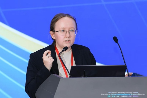 Svetlana Zhuchkova做了题为《准博士之道:硕博连读成功因子识别》的报告。她认为,博士生群体来源逐渐多元化,招生程序从“成绩导向”转向“整体评估”。通过对全俄985名博士毕业生的调查,她指出,博士阶段的成功不仅取决于前期学术经历,更依赖导师指导和科研群体支持,硕博连读有助于提高博士完成率。